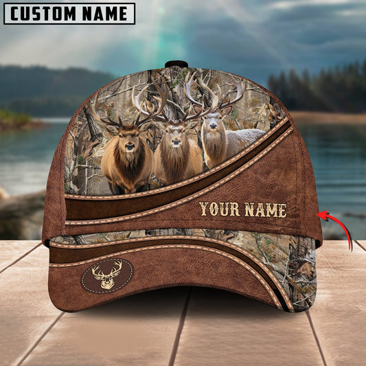Cornbee Hunting Personalized Name Brown Leather Pattern 3D Classic Cap