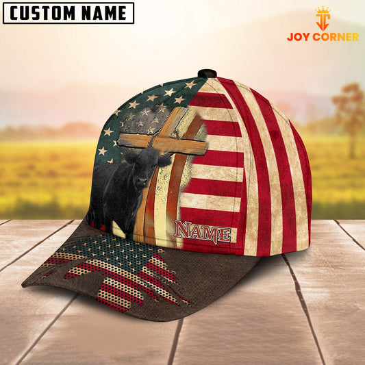 Joycorners Black Angus USA Flag Personalized Name 3D Classic Cap