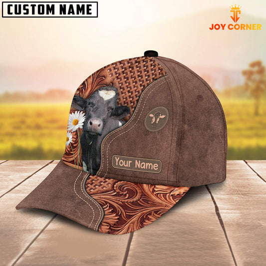 Joycorners Holstein Personalized Name Brown Carving Leather Pattern 3D Classic Cap