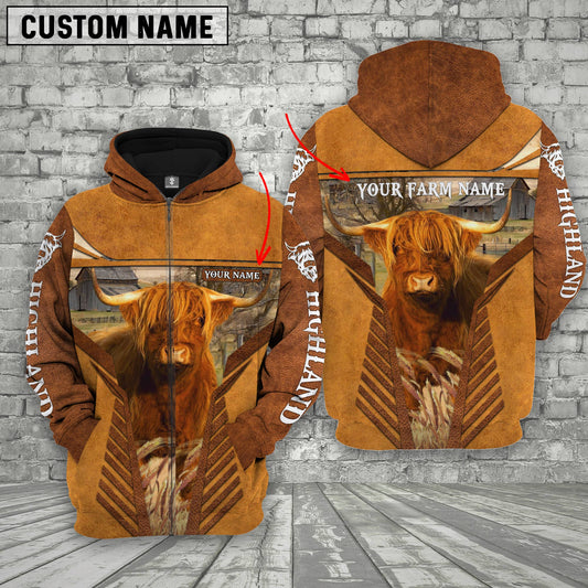 Joycorners Highland Cattle Custom Name Printed 3D Retro Hoodie