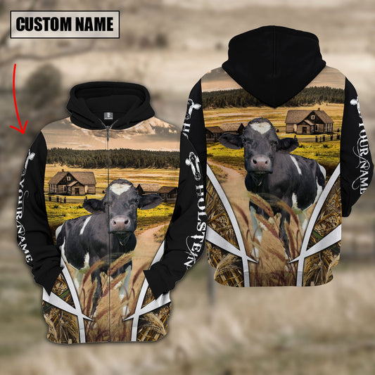Joycorners Holstein On Farms Custom Name Printed 3D Black Hoodie
