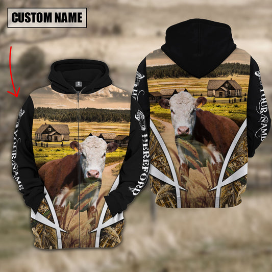Joycorners Hereford On Farms Custom Name Printed 3D Black Hoodie