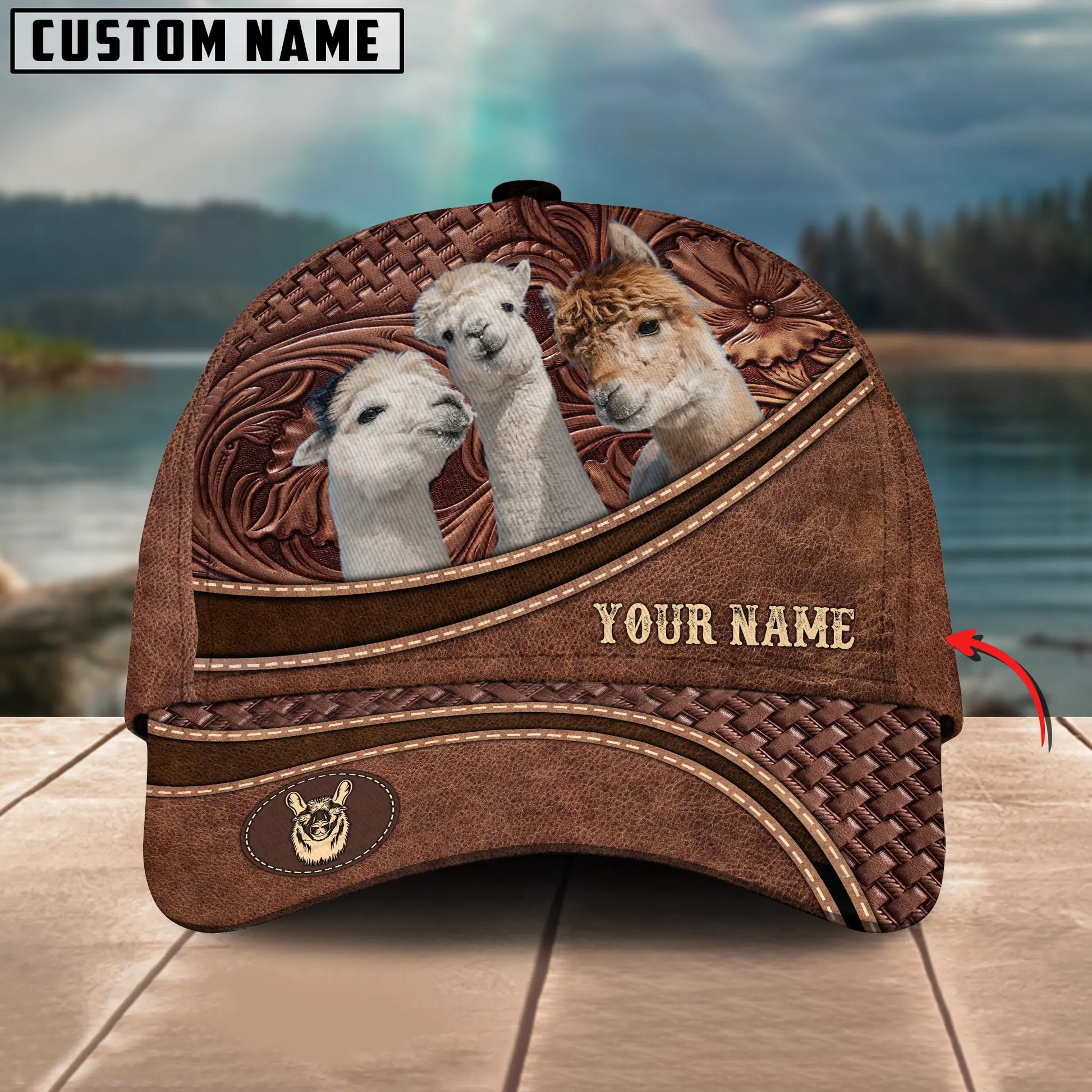 Joycorners Alpaca Personalized Name Brown Carving Leather Pattern 3D Classic Cap