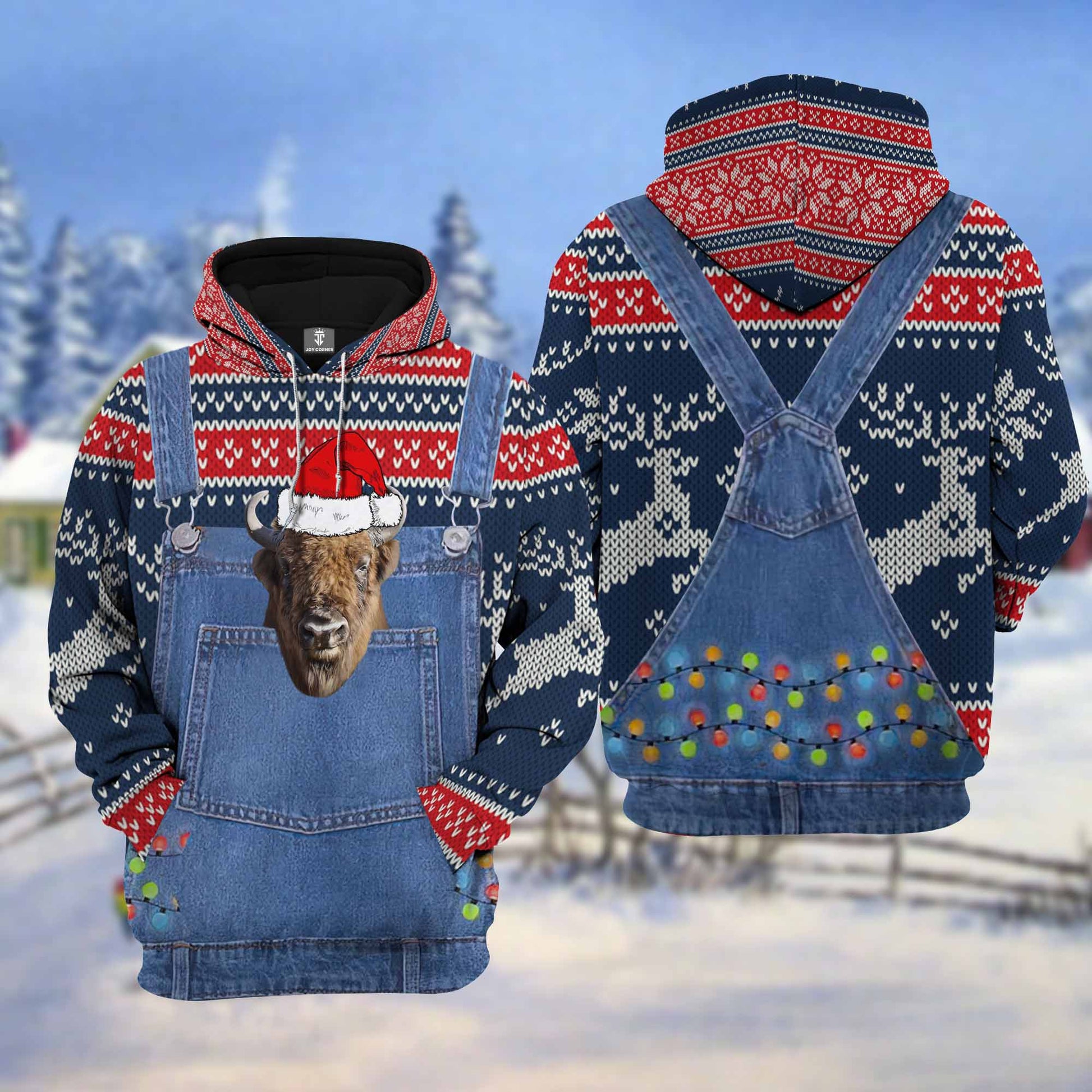 Joycorners Beefalo Cattle Christmas Knitting Hoodie Pattern 3D