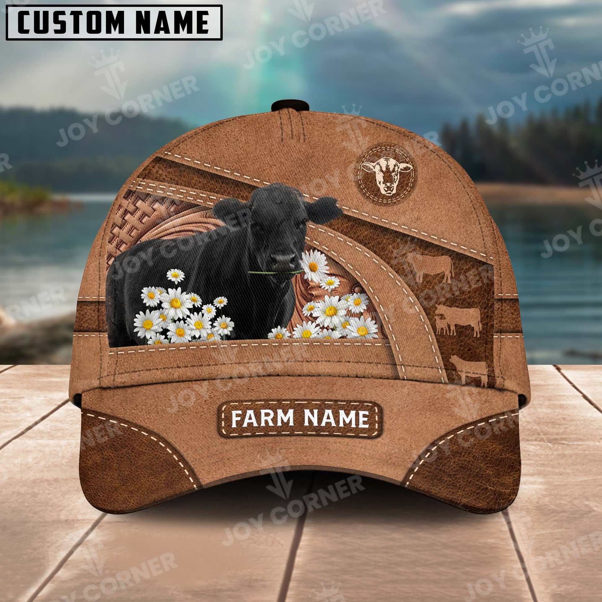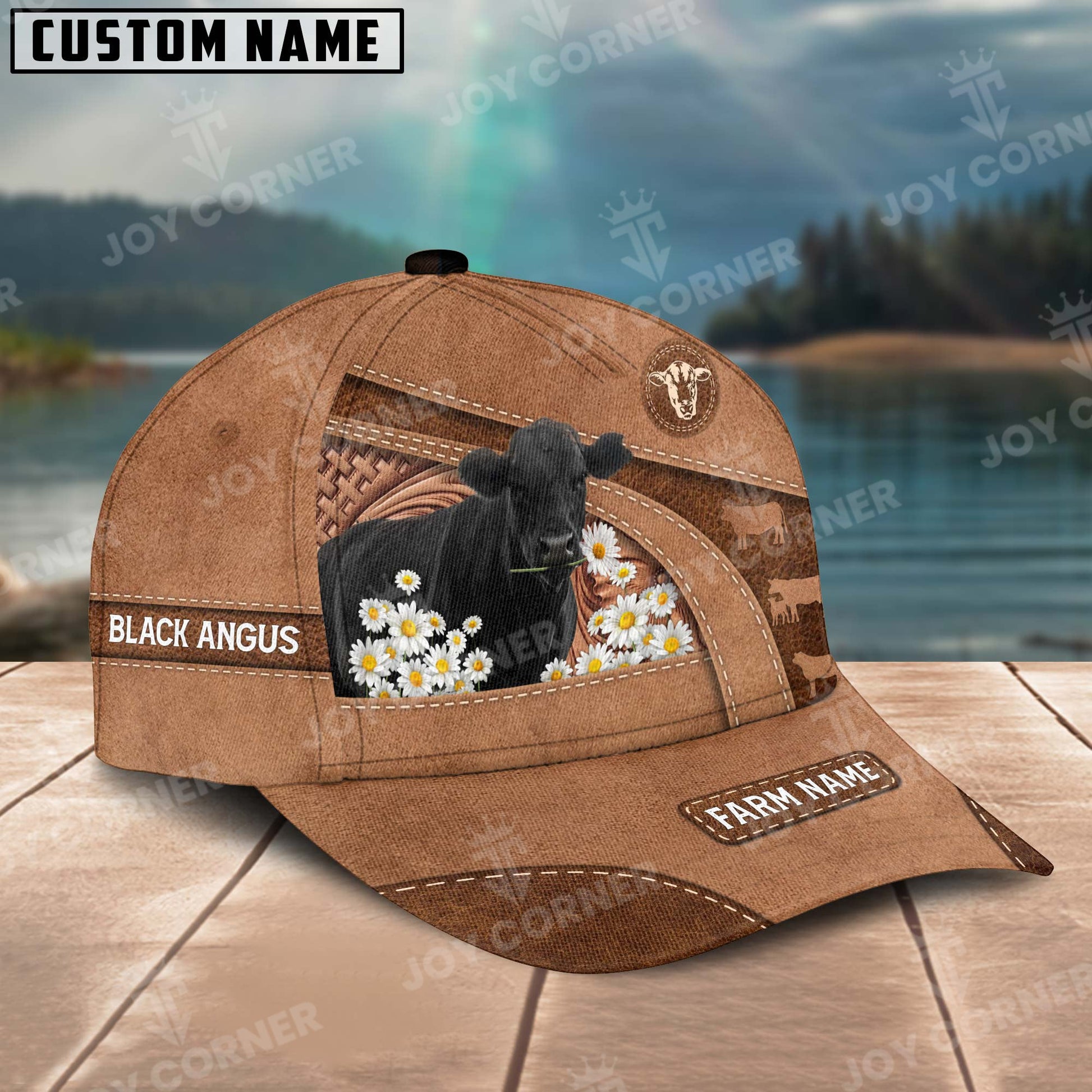 Joycorners Black Angus Personalized Name Brown Carving Leather Pattern 3D Classic Cap 2