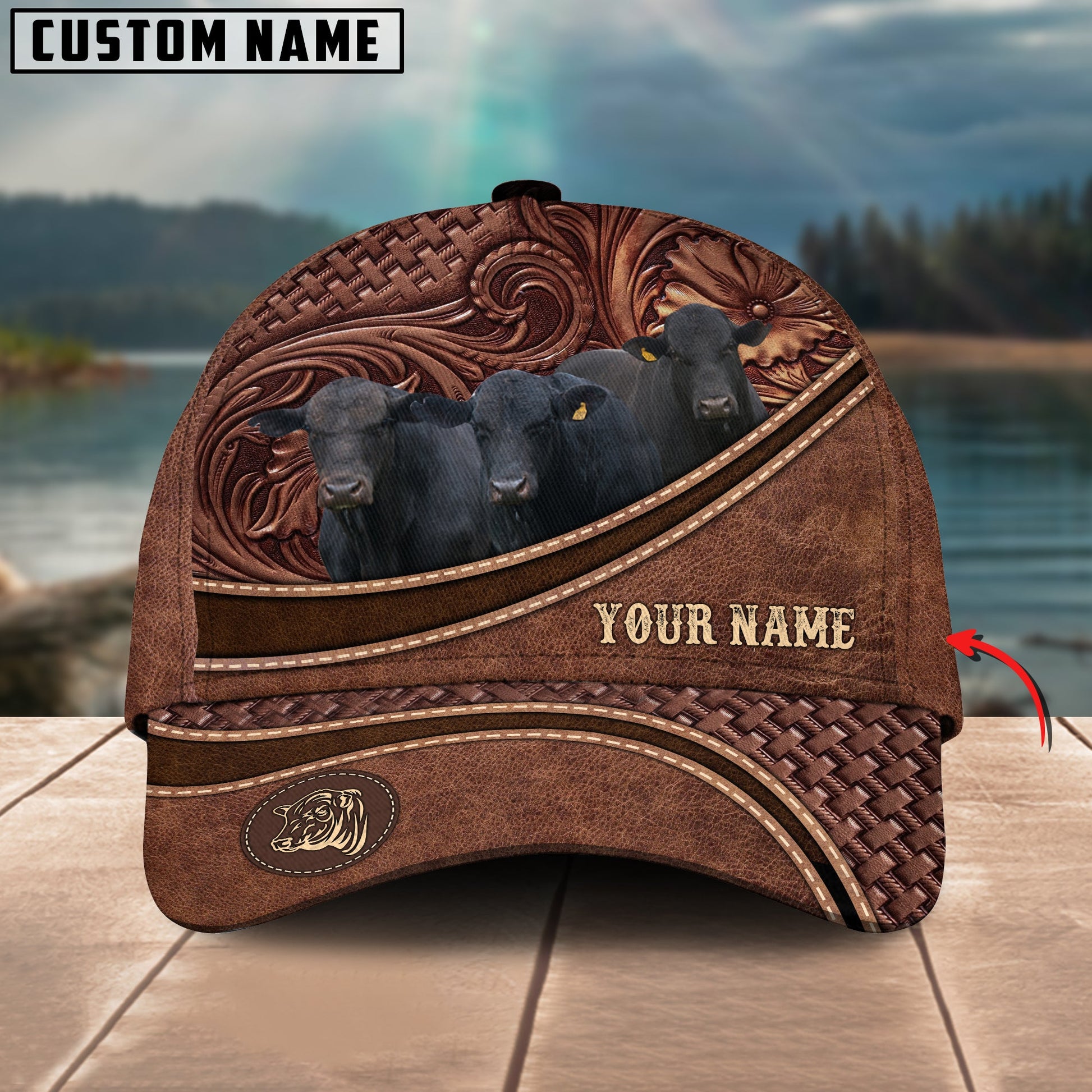 Joycorners Black Brangus Cattle Personalized Name Brown Carving Leather Pattern 3D Classic Cap