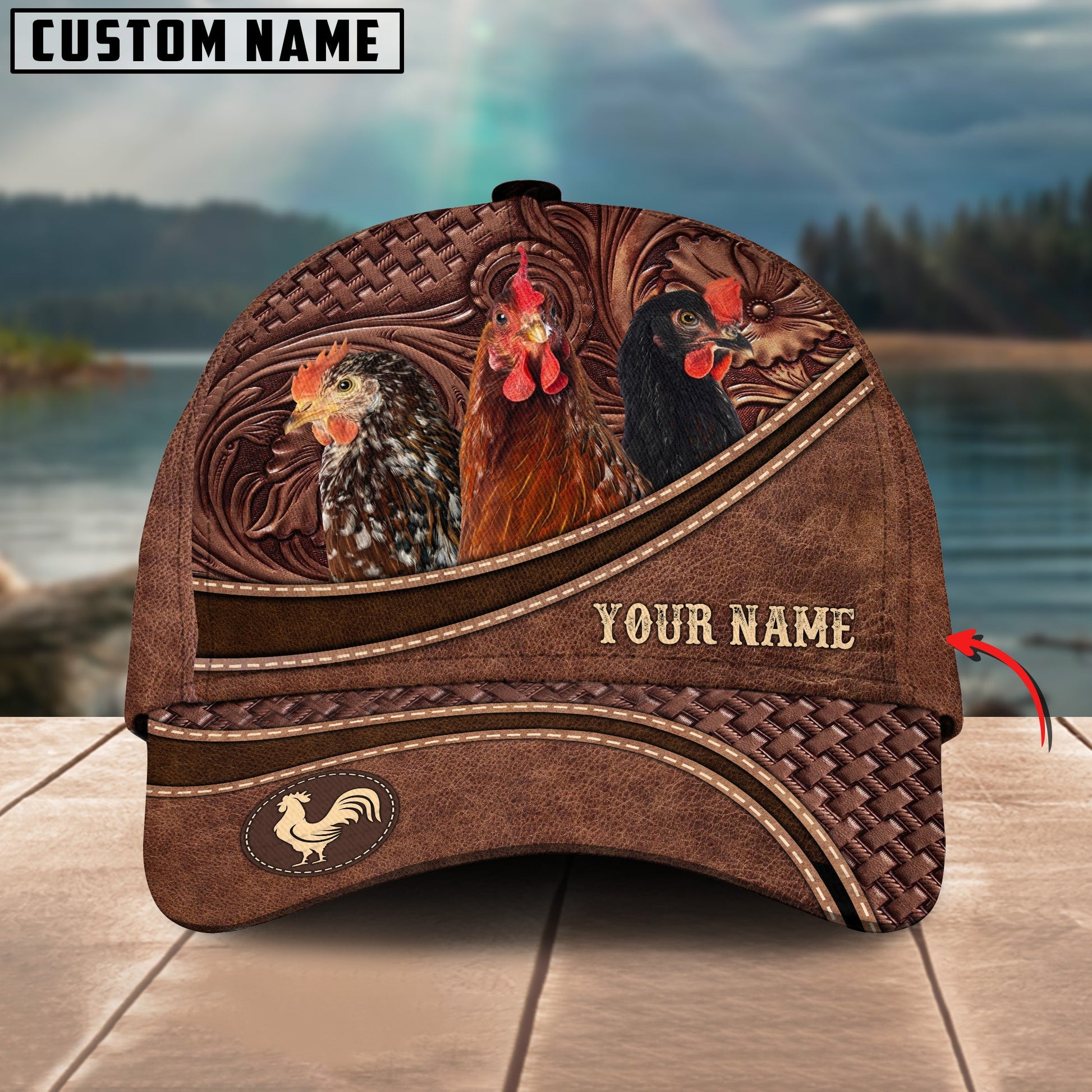 Joycorners Chicken Personalized Name Brown Carving Leather Pattern 3D Classic Cap