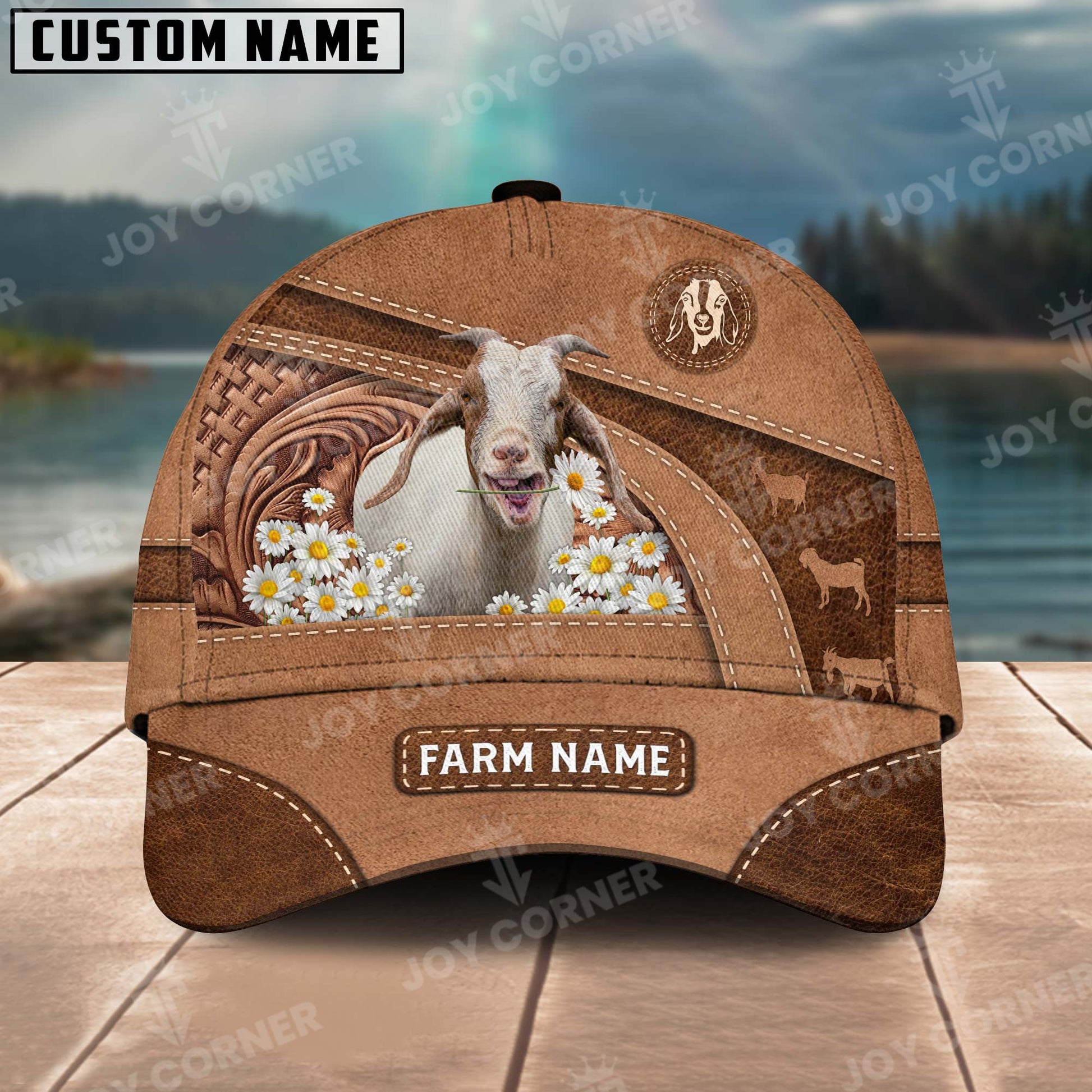Joycorners Goat Personalized Name Brown Carving Leather Pattern 3D Classic Cap 2