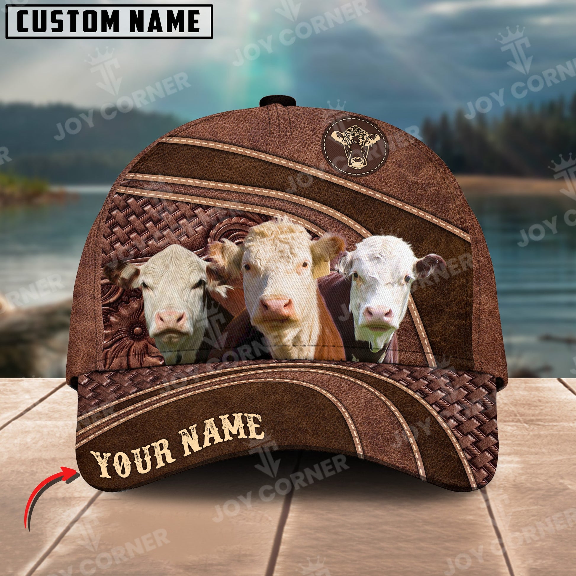 Joycorners Hereford Personalized Name Brown Carving Leather Pattern 3D Classic Cap 1