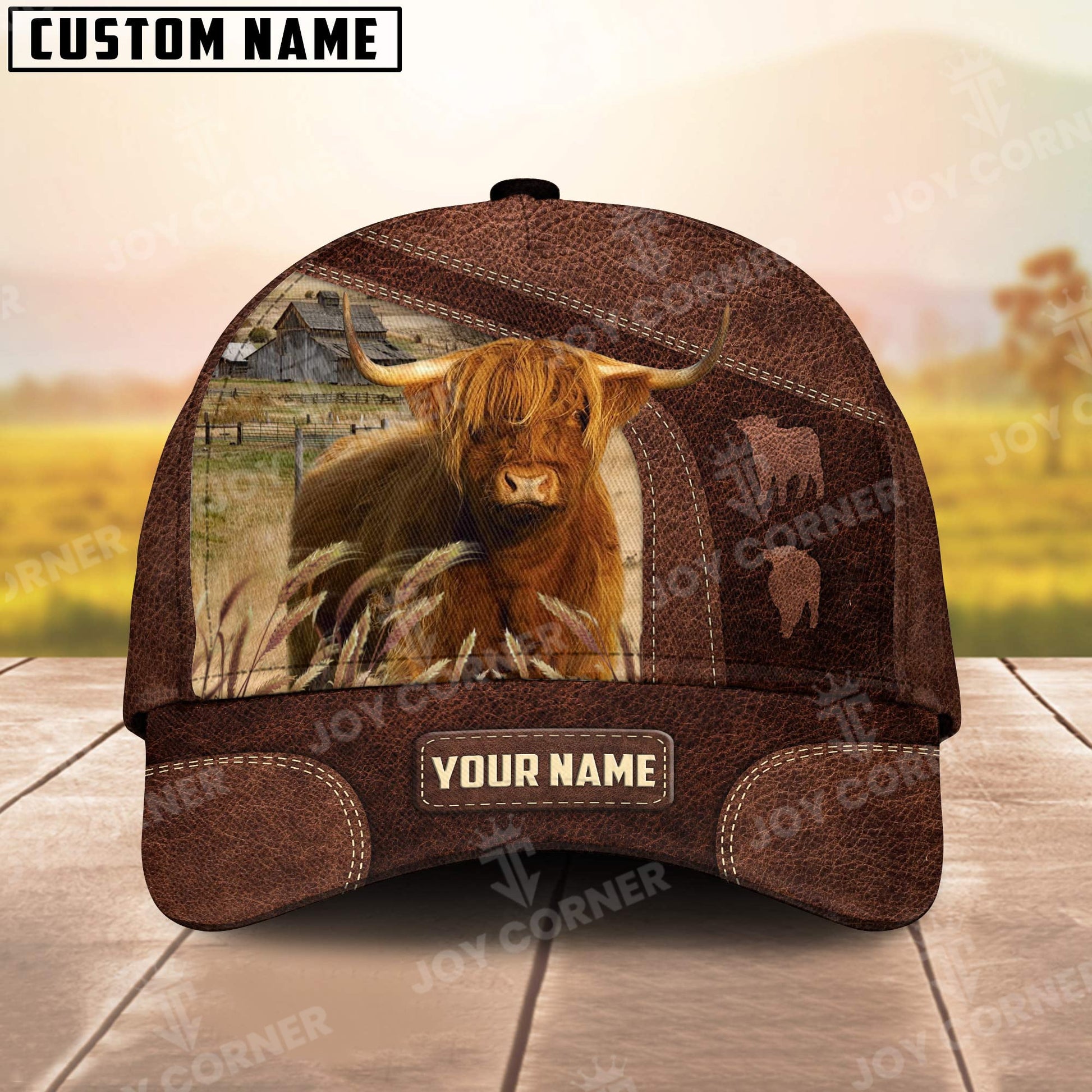 Joycorners Highland Personalized Name Brown Carving Leather Pattern 3D Classic Cap 3