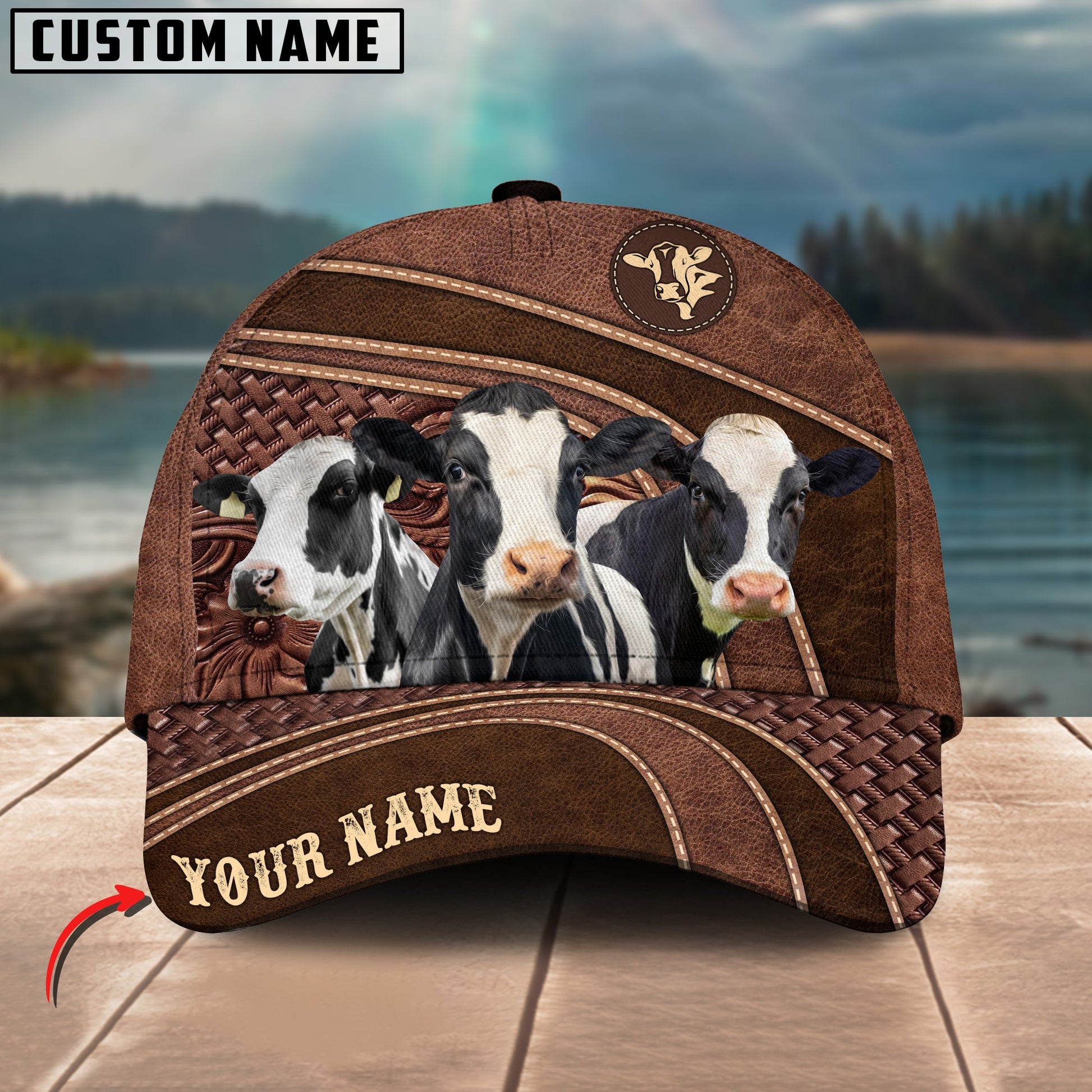 Joycorners Holstein Personalized Name Brown Carving Leather Pattern 3D Classic Cap 1