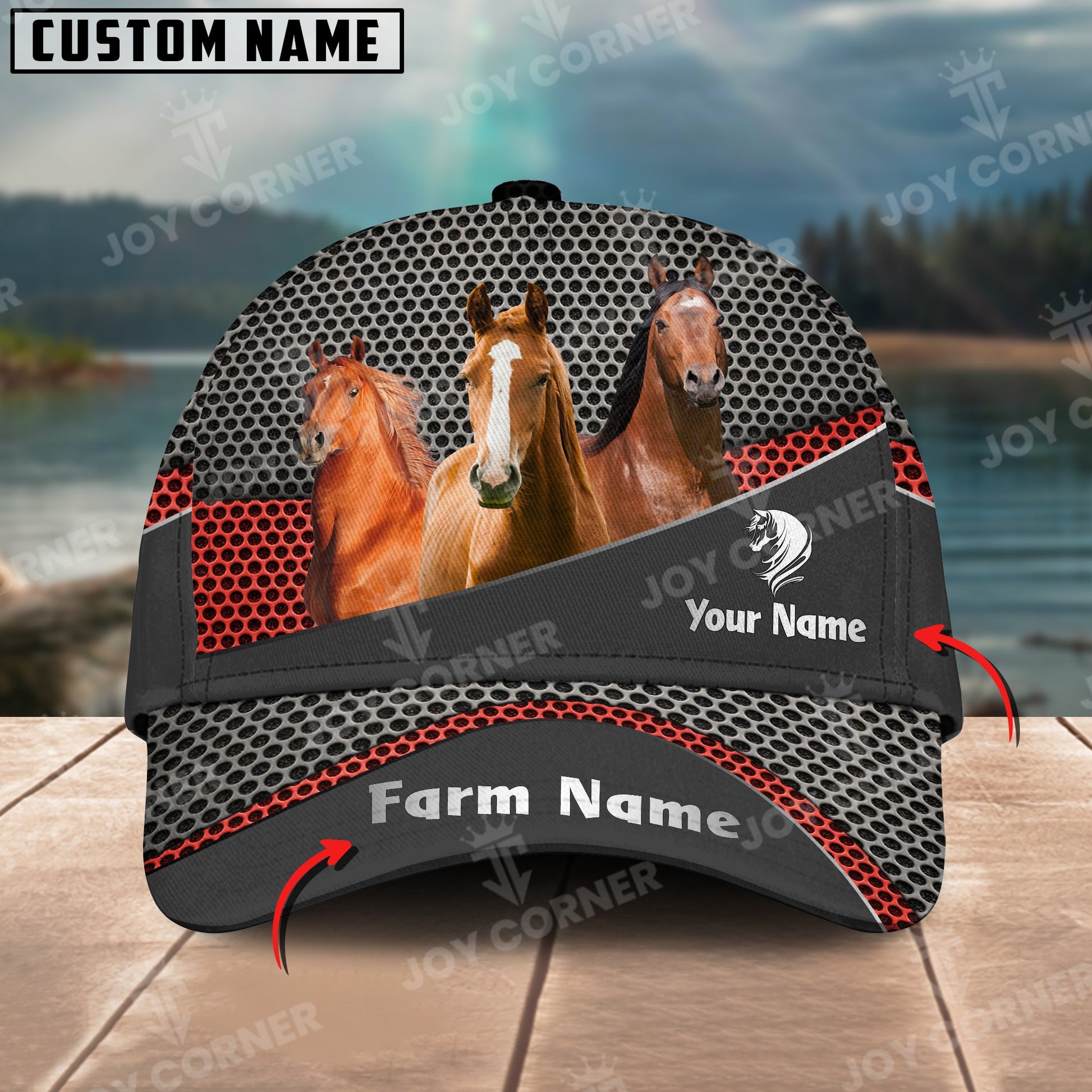 Joycorners Horse Customized Name And Farm Name Metal 3D Classic Cap