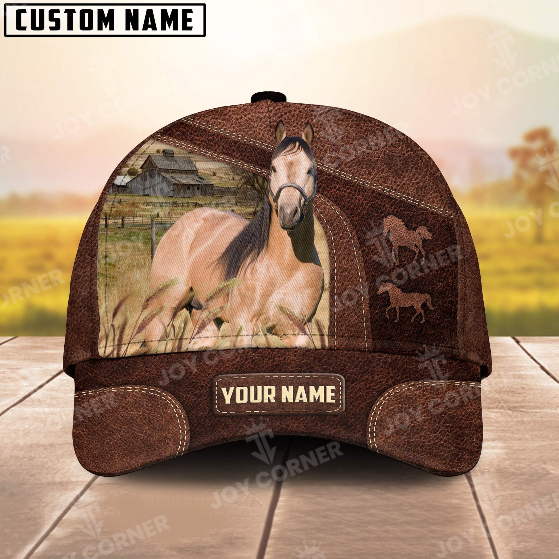 Joycorners Horse Personalized Name Brown Carving Leather Pattern 3D Classic Cap 3