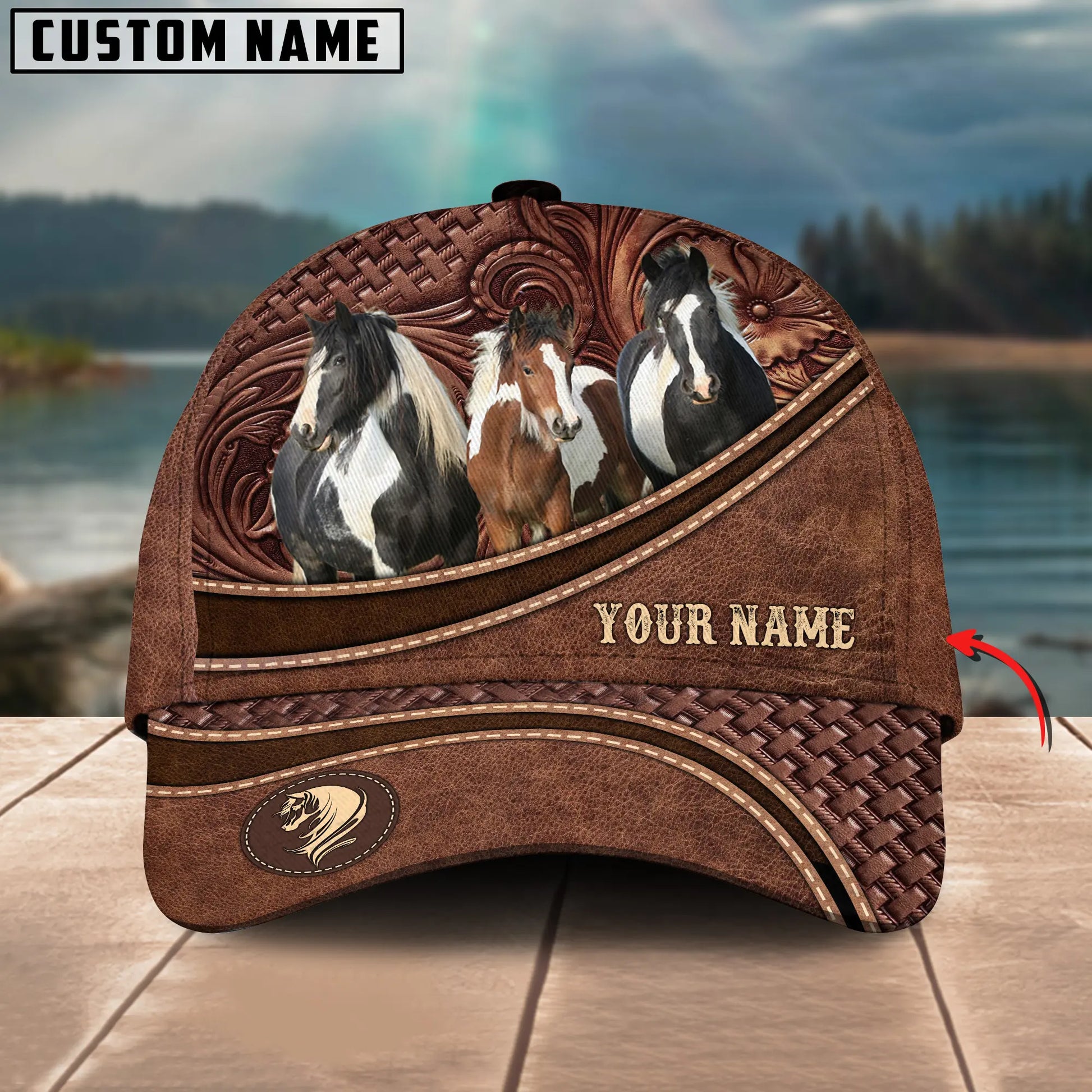 Joycorners Irishcob Stallions Personalized Name Brown Carving Leather Pattern 3D Classic Cap