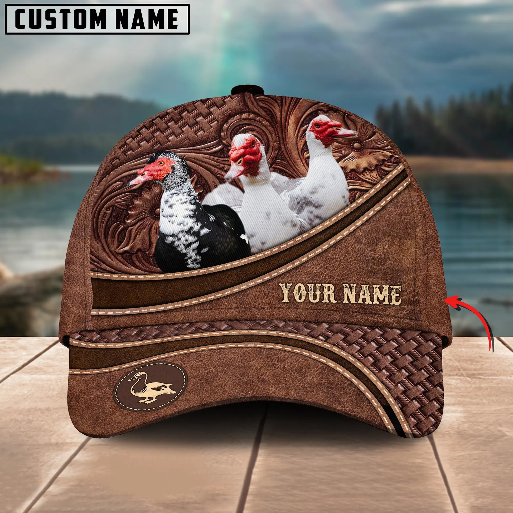 Joycorners Muscovy Ducks Personalized Name Brown Carving Leather Pattern 3D Classic Cap