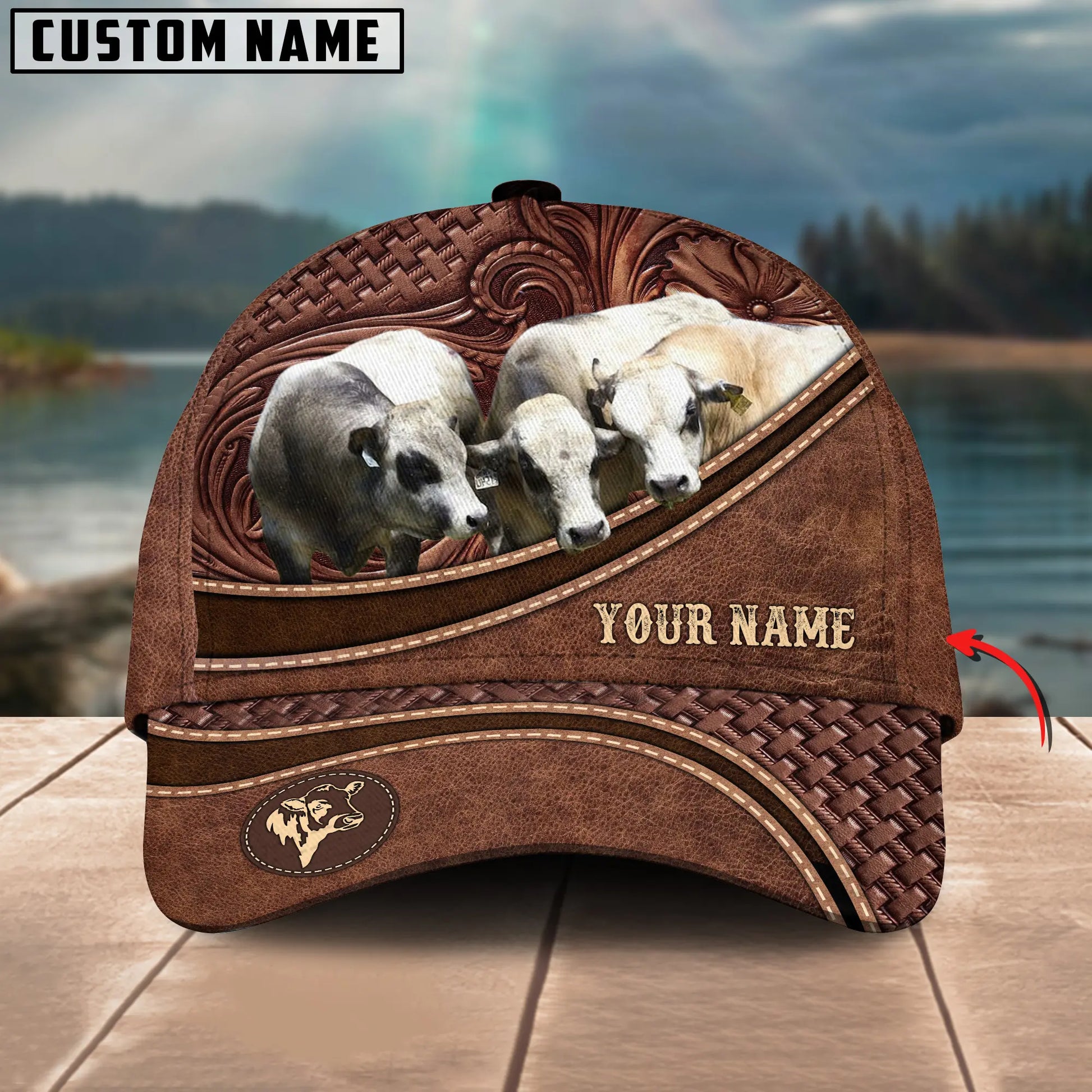 Joycorners Piedmontese Personalized Name Brown Carving Leather Pattern 3D Classic Cap