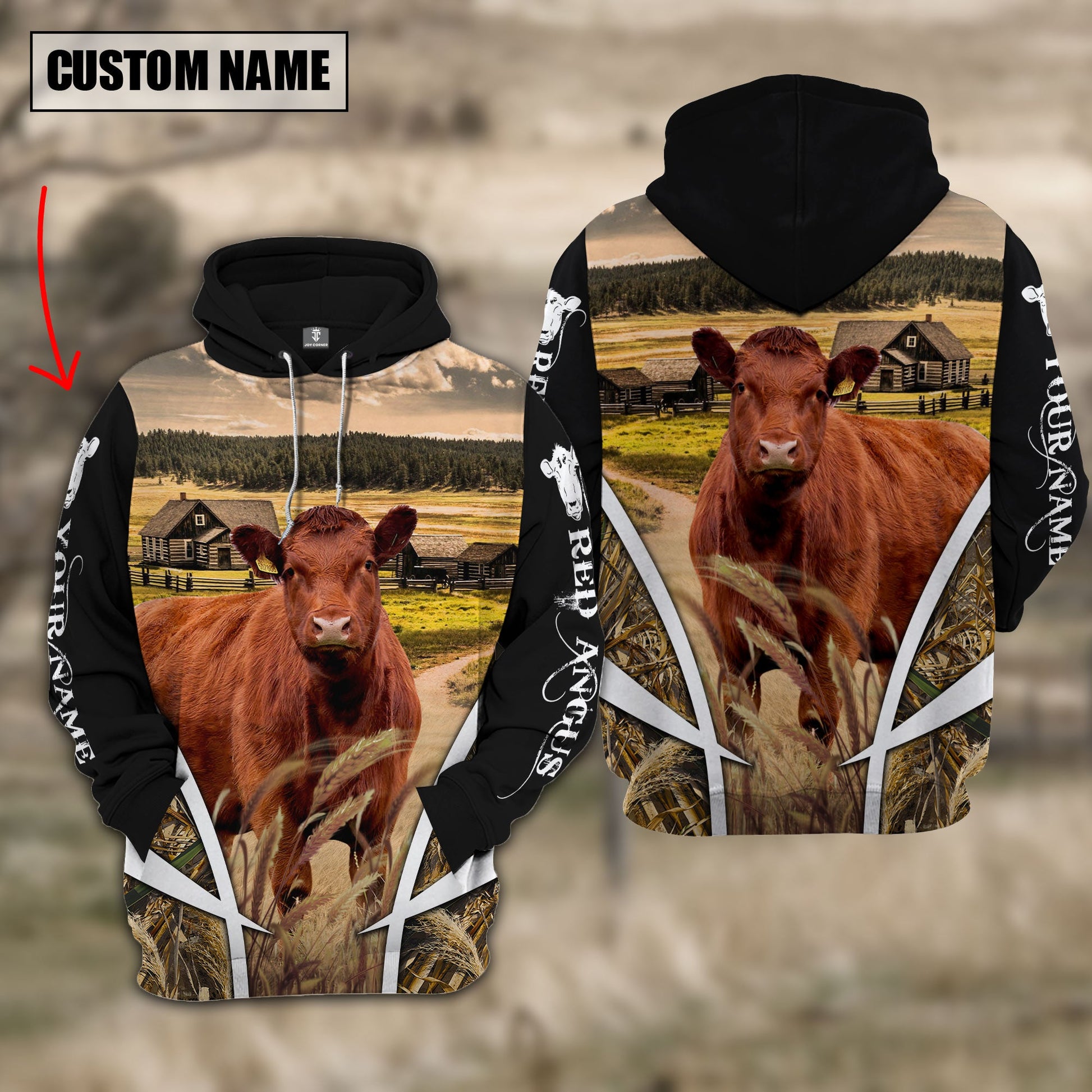Joycorners Red Angus Custom Name Wheat Farm Hoodie