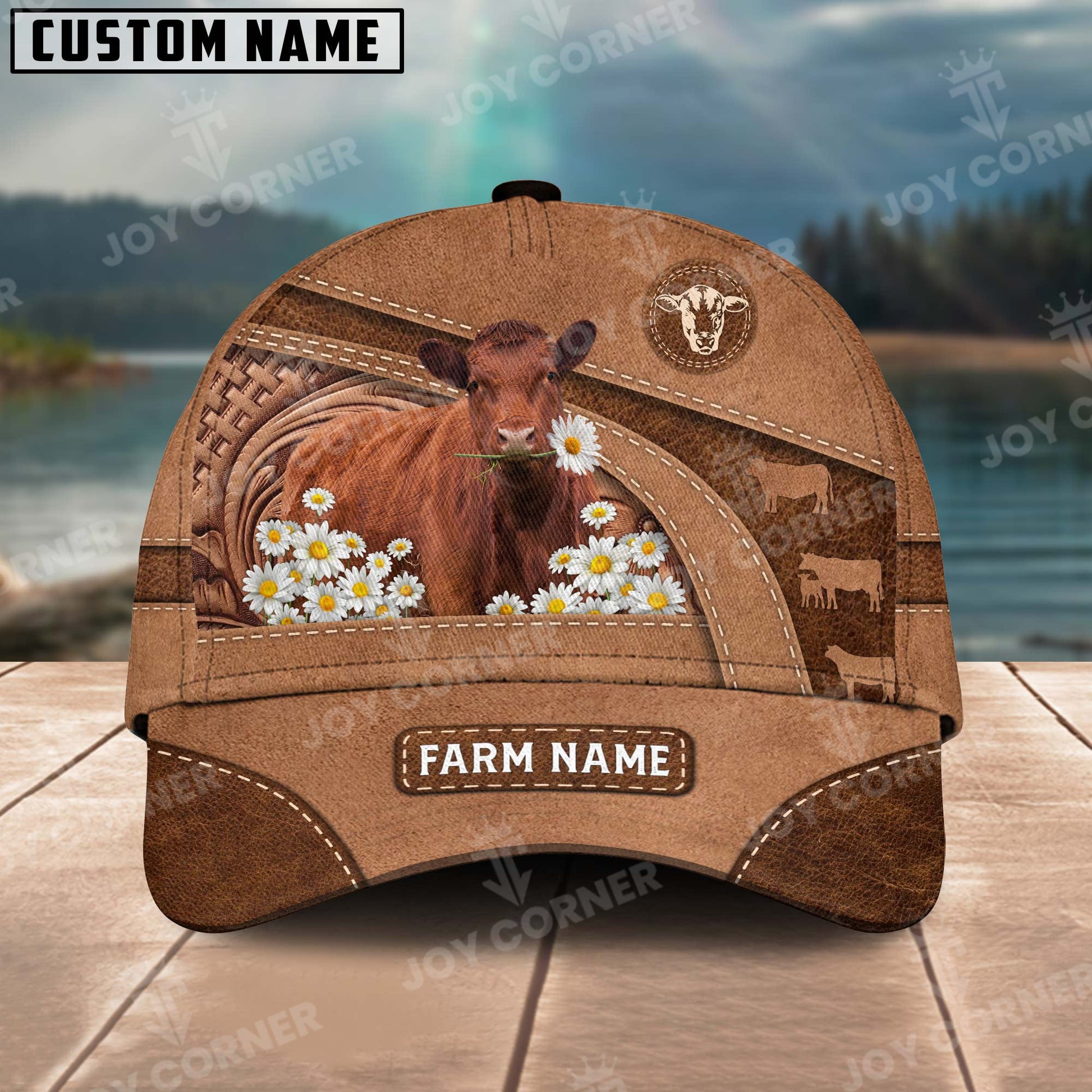 Joycorners Red Angus Personalized Name Brown Carving Leather Pattern 3D Classic Cap 2