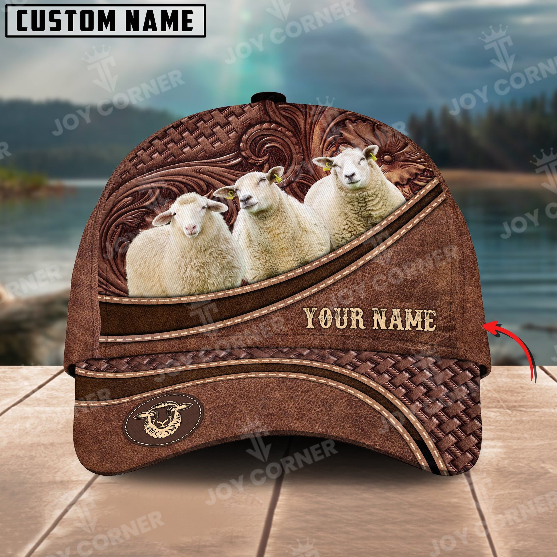 Joycorners Sheep Personalized Name Brown Carving Leather Pattern 3D Classic Cap
