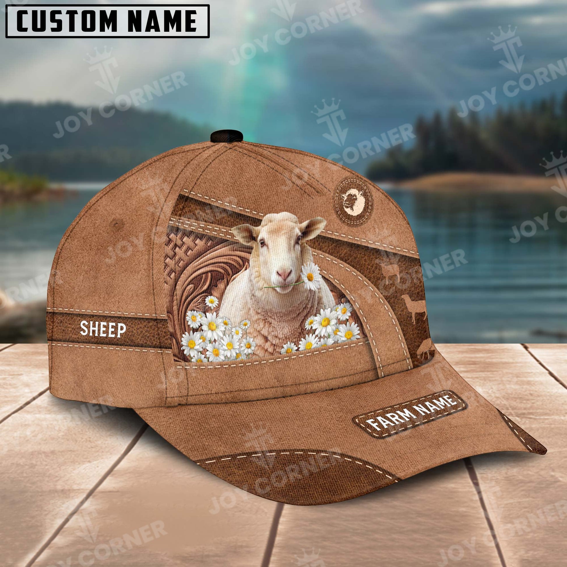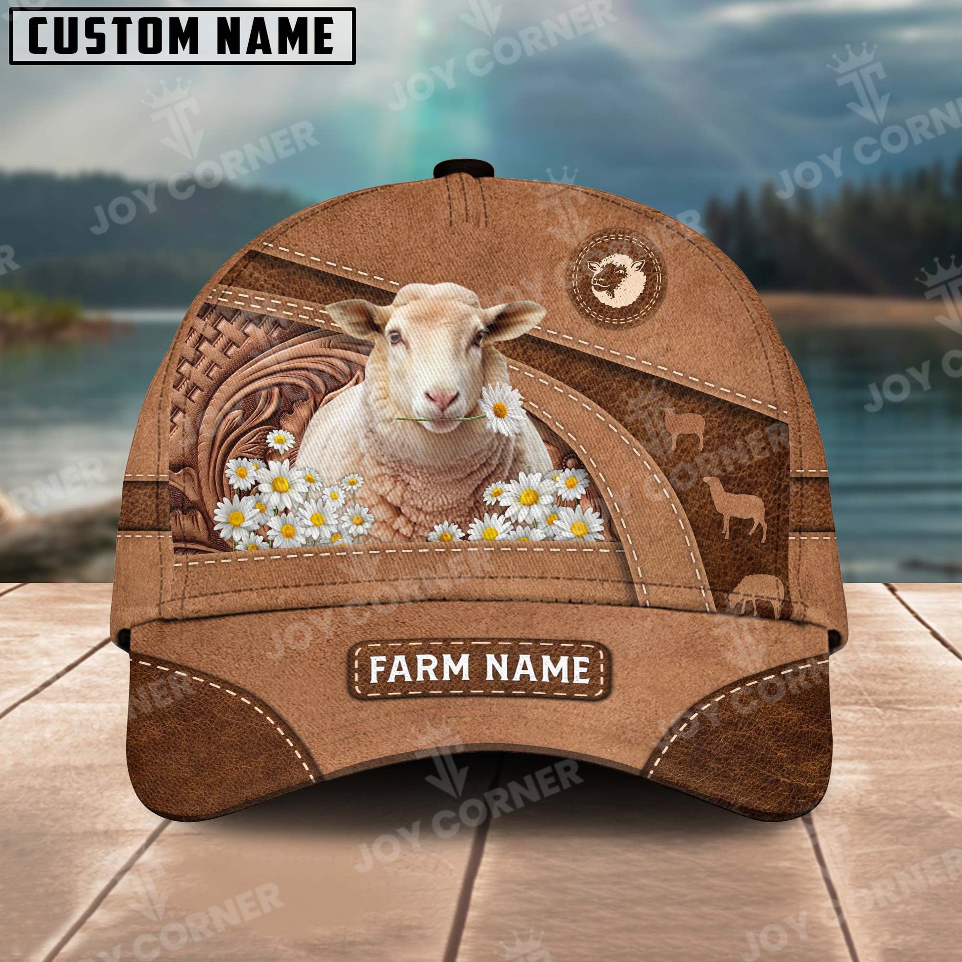Joycorners Sheep Personalized Name Brown Carving Leather Pattern 3D Classic Cap 2