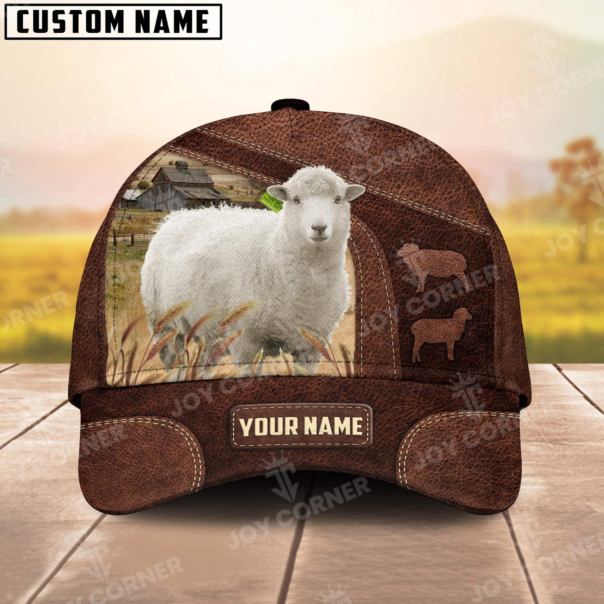 Joycorners Sheep Personalized Name Brown Carving Leather Pattern 3D Classic Cap 3