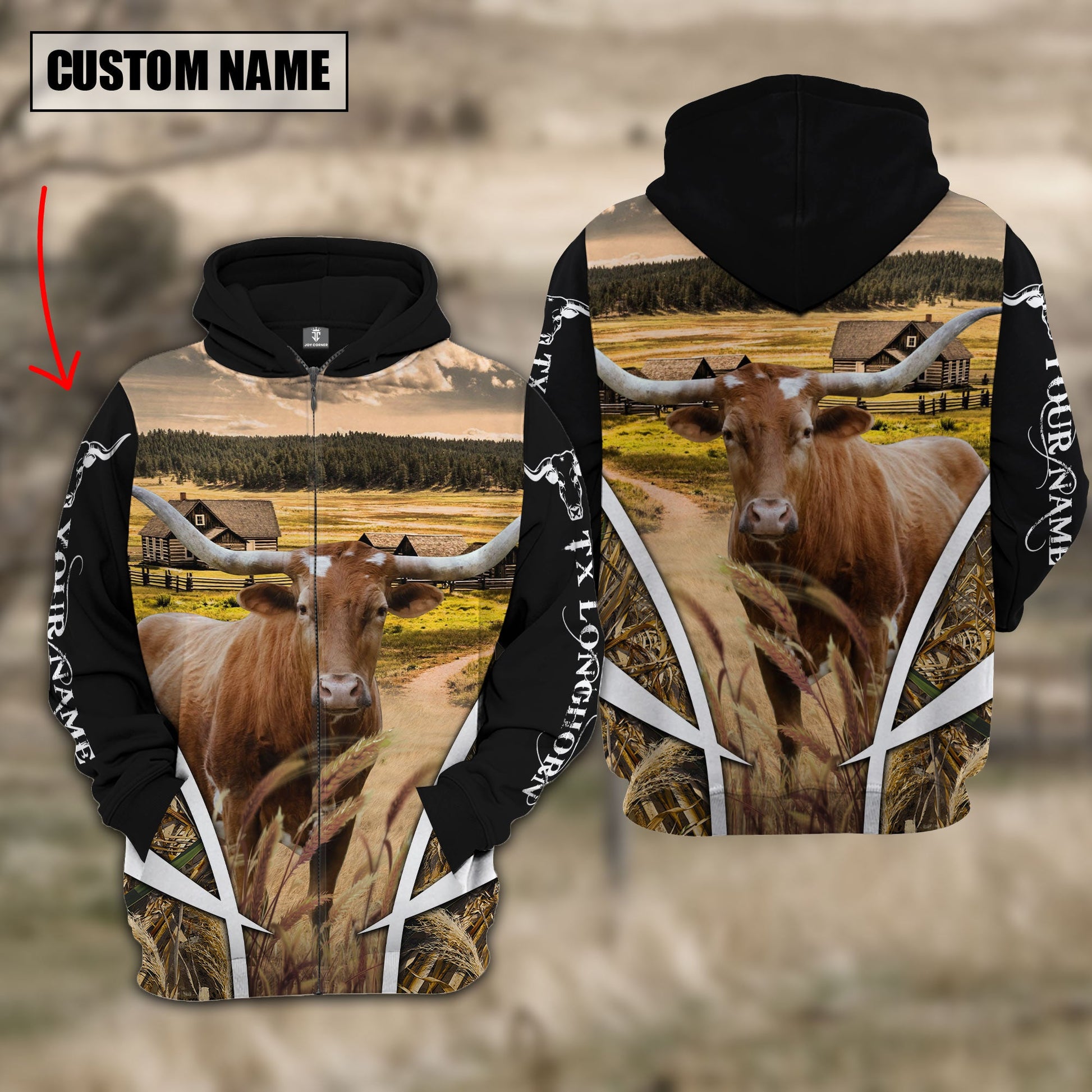 Joycorners Texas Longhorn Custom Name Wheat Farm Hoodie