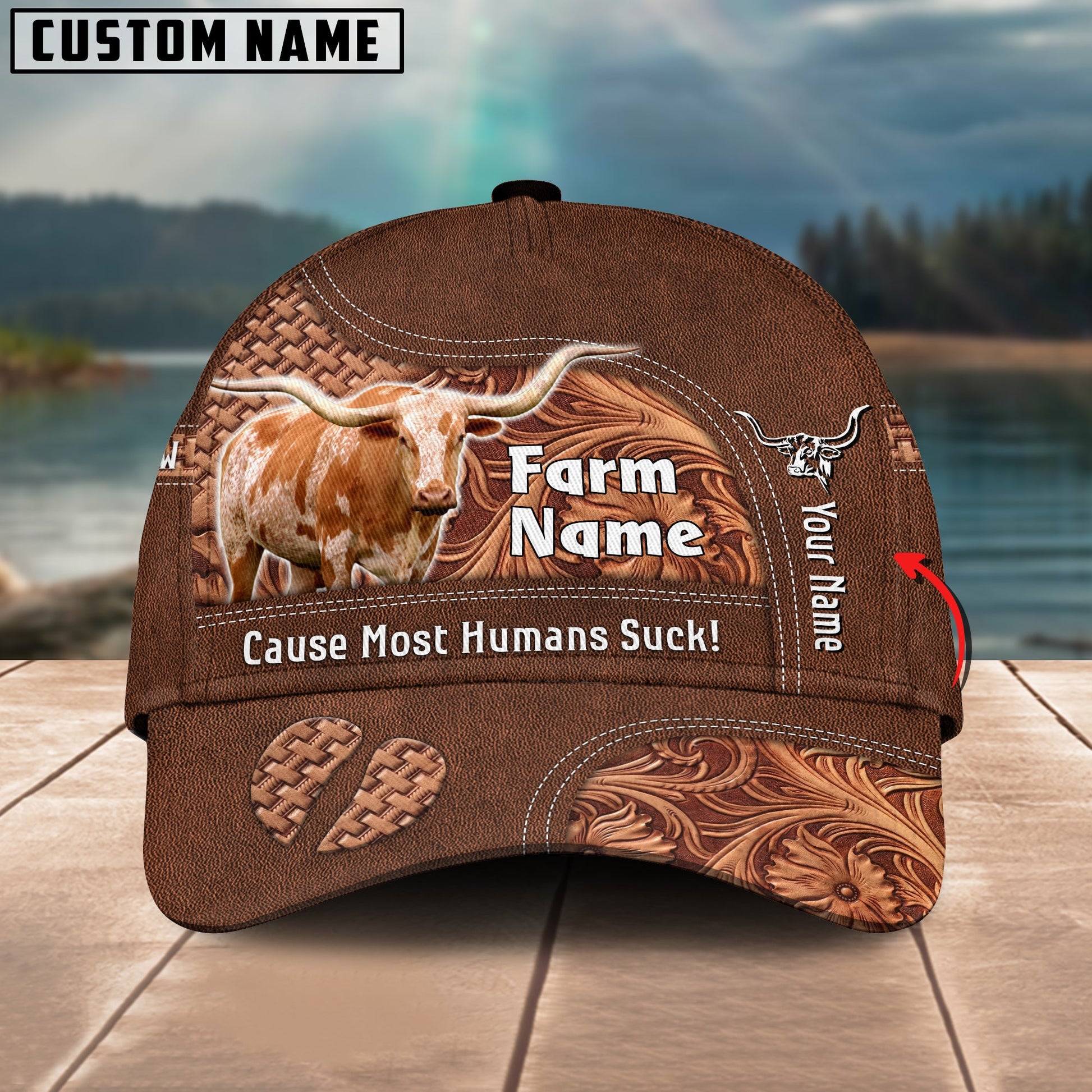 Joycorners Texas Longhorn Customized Name And Farm Name Leather Carving 3D Classic Cap