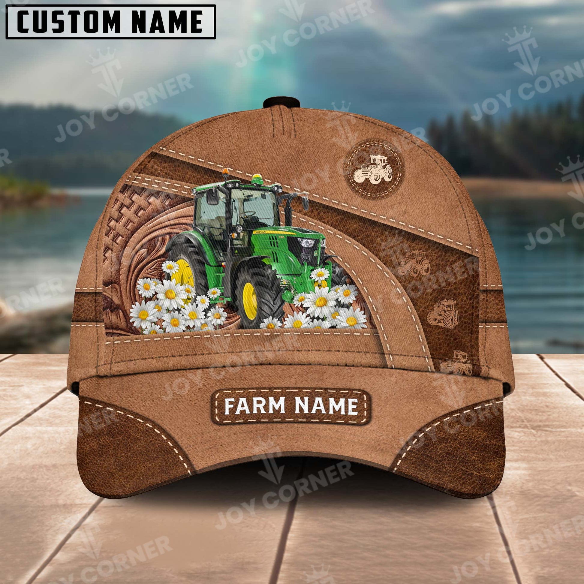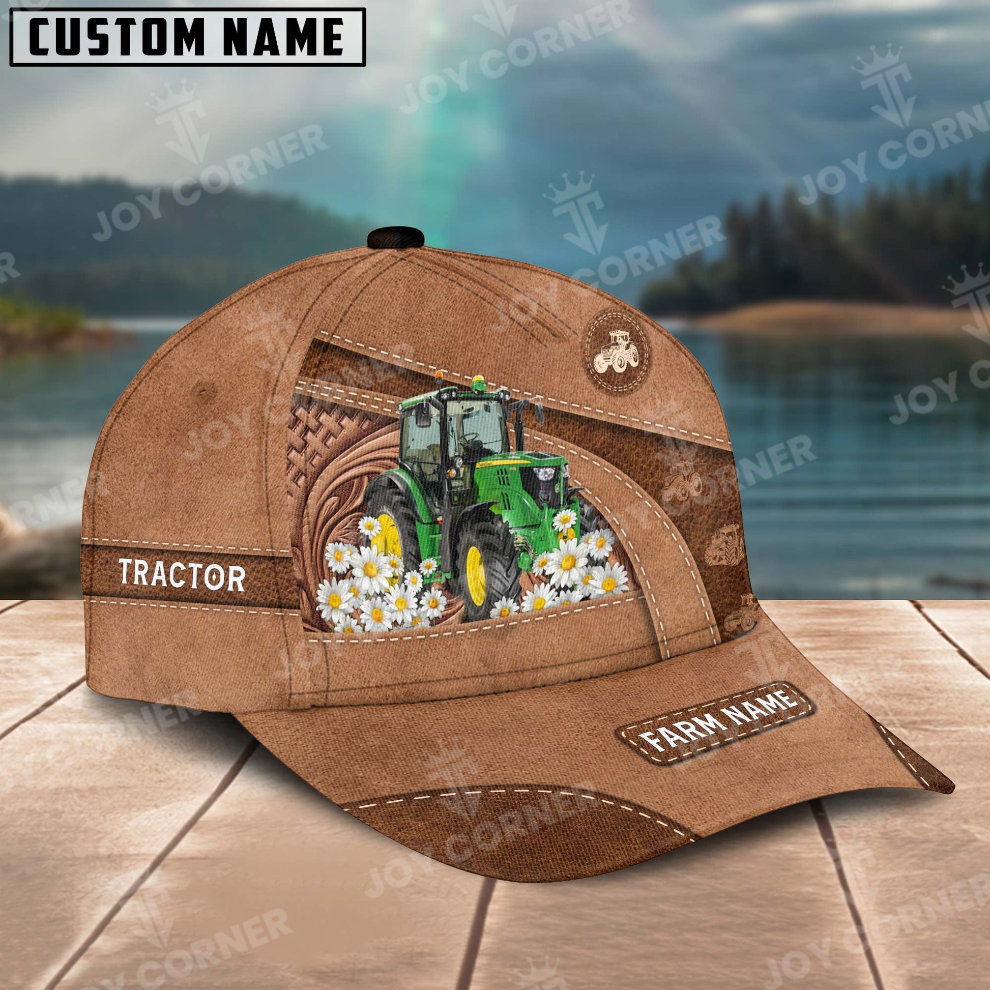 Joycorners Tractor Personalized Name Brown Carving Leather Pattern 3D Classic Cap 2