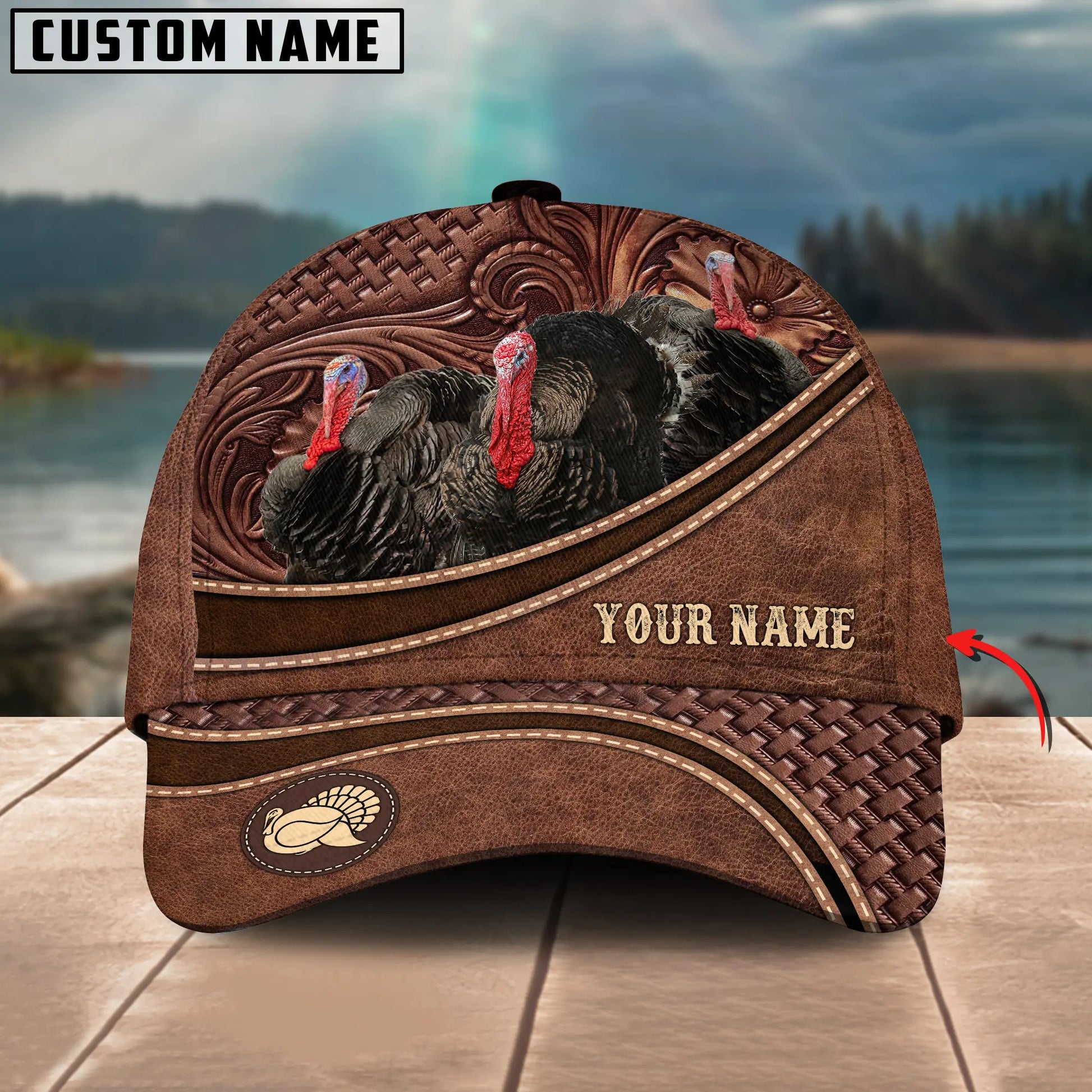 Joycorners Turkeys Personalized Name Brown Carving Leather Pattern 3D Classic Cap