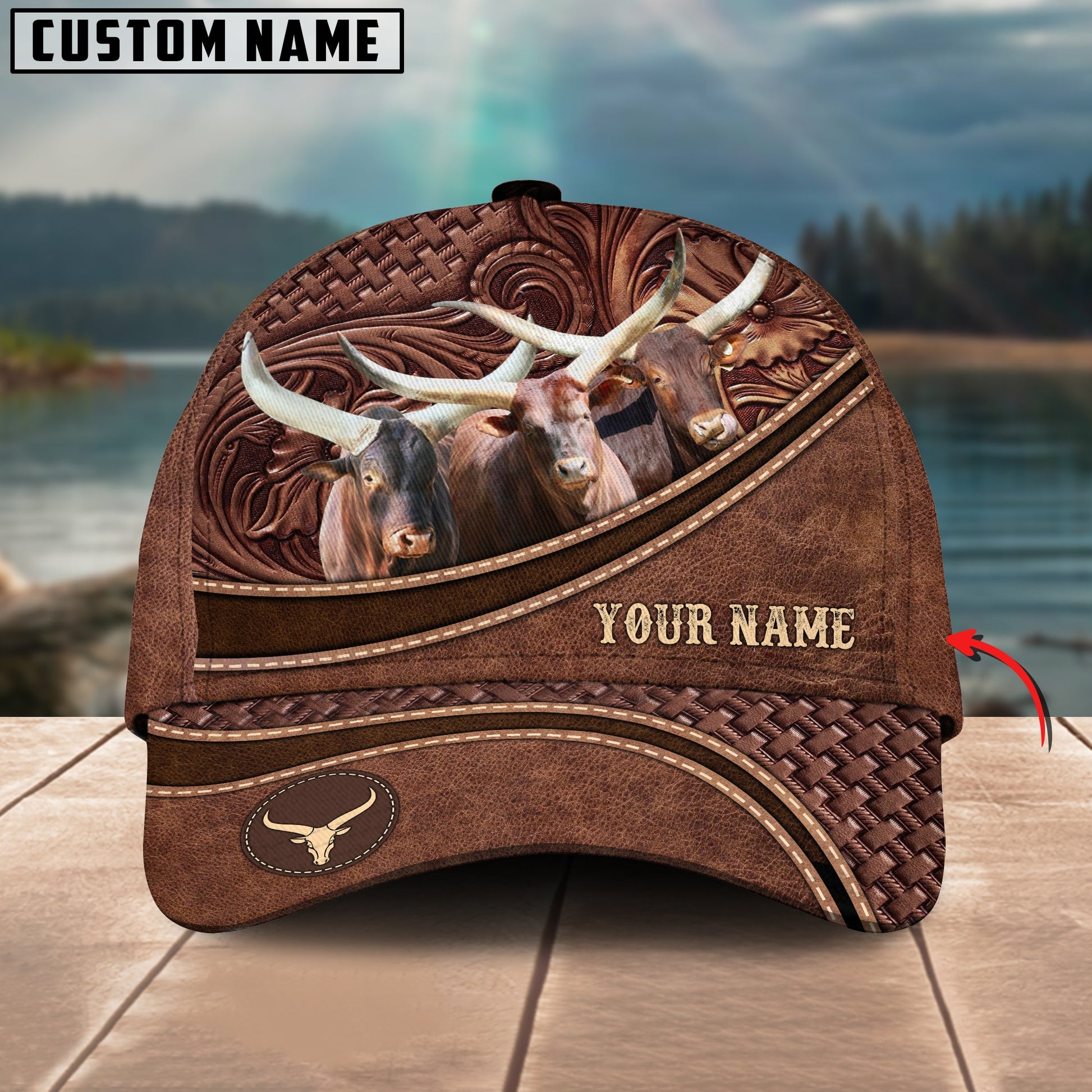 Joycorners Watusi Cattle Personalized Name Brown Carving Leather Pattern 3D Classic Cap